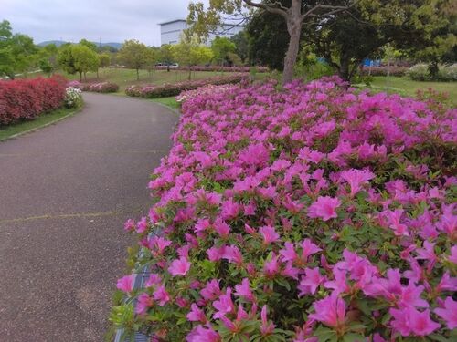 ★久しぶりに協同学苑を歩いてきた。 ここはco-opの教育施設で公園ではないのだが、 自然豊かで散歩される方も多い。 桜が終って『つつじの季節』になった。 紅白のつつじが美しい。 並木道も新緑である。 右は庭園だが、裏手は散歩道になっていて、 竹林へと…